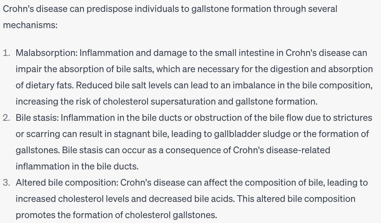 How does Crohn’s disease predispose to gallstone formation?