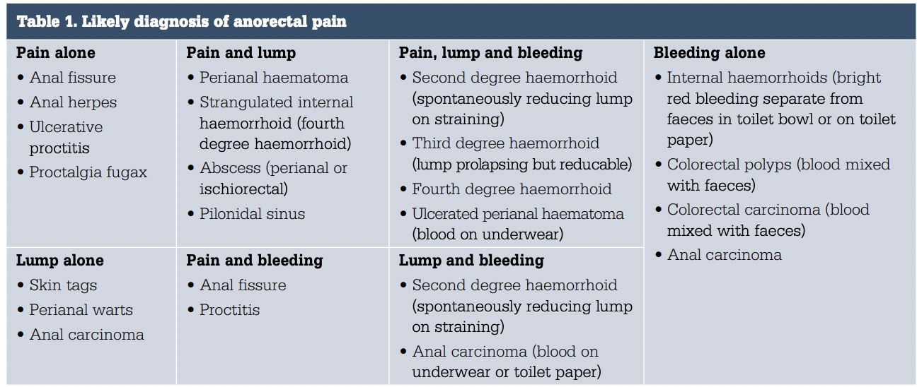 Differential Diagnoses of Anorectal Pain: