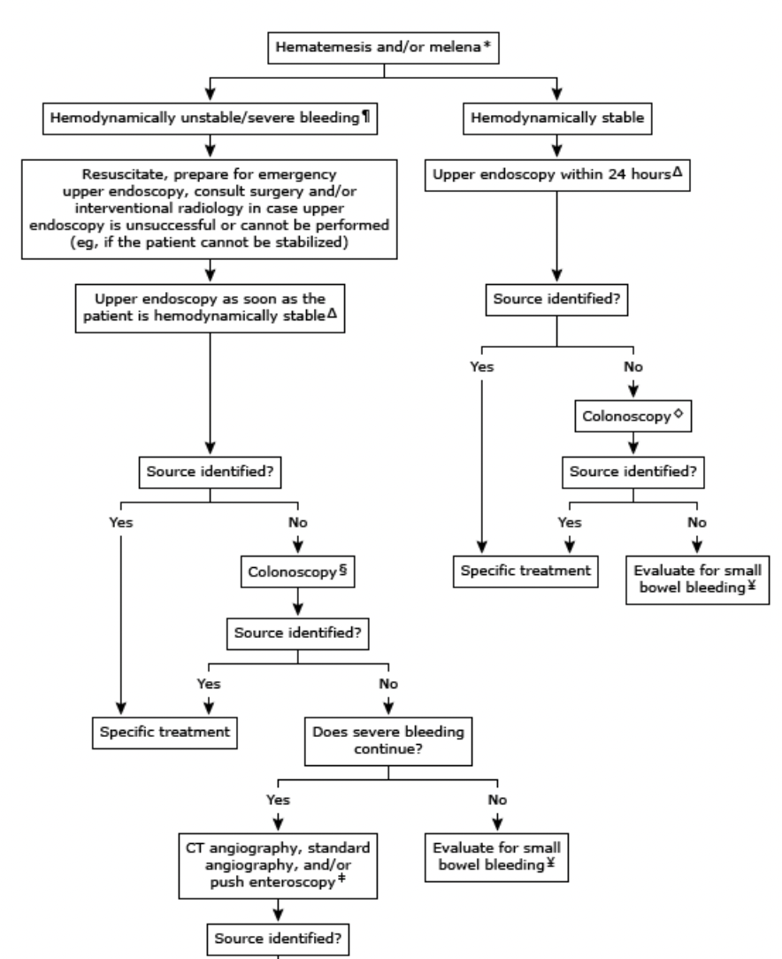 Evaluation of suspected upper gastrointestinal bleeding?