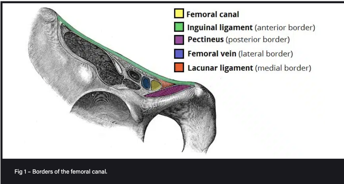 What are the borders of the femoral canal?