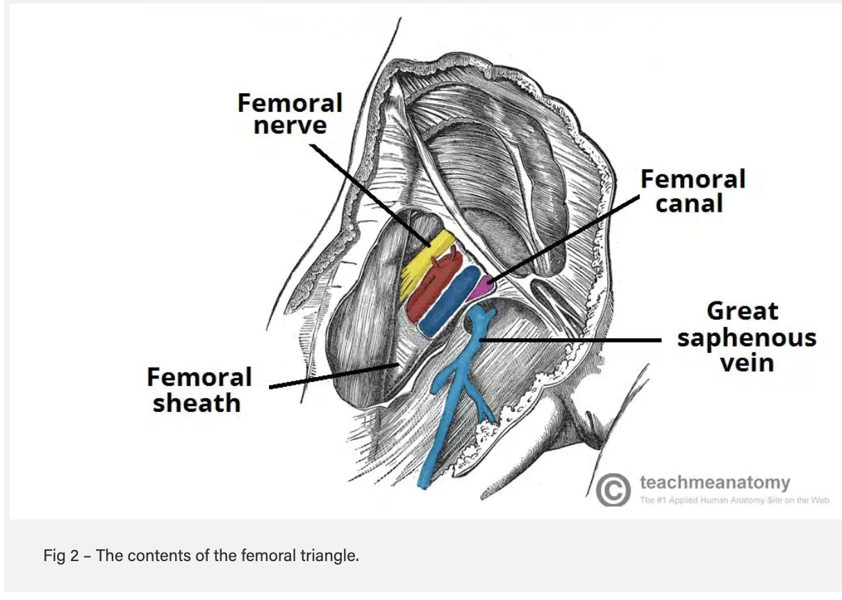 What are the contents of the femoral canal?