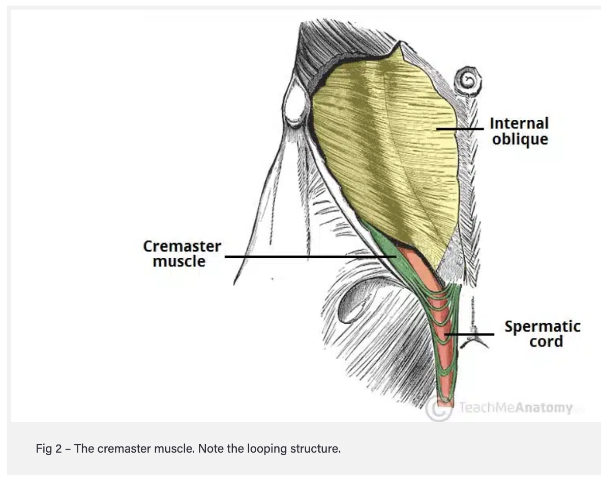 2. Cremaster muscle and fascia – derived from the internal oblique muscle.