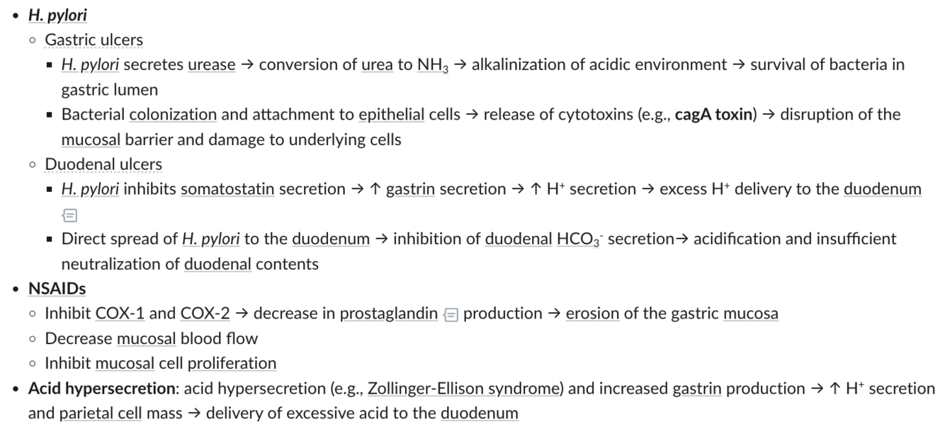Compare the Mechanisms of physiological disruption in Gastric vs. Duodenal ulcers?