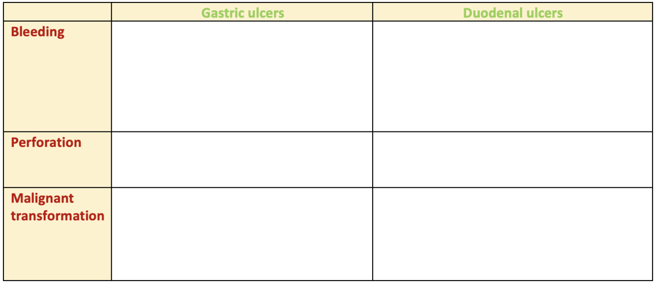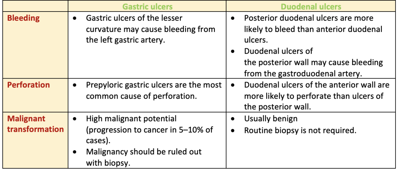 Compare the complications of gastric and duodenal ulcers?