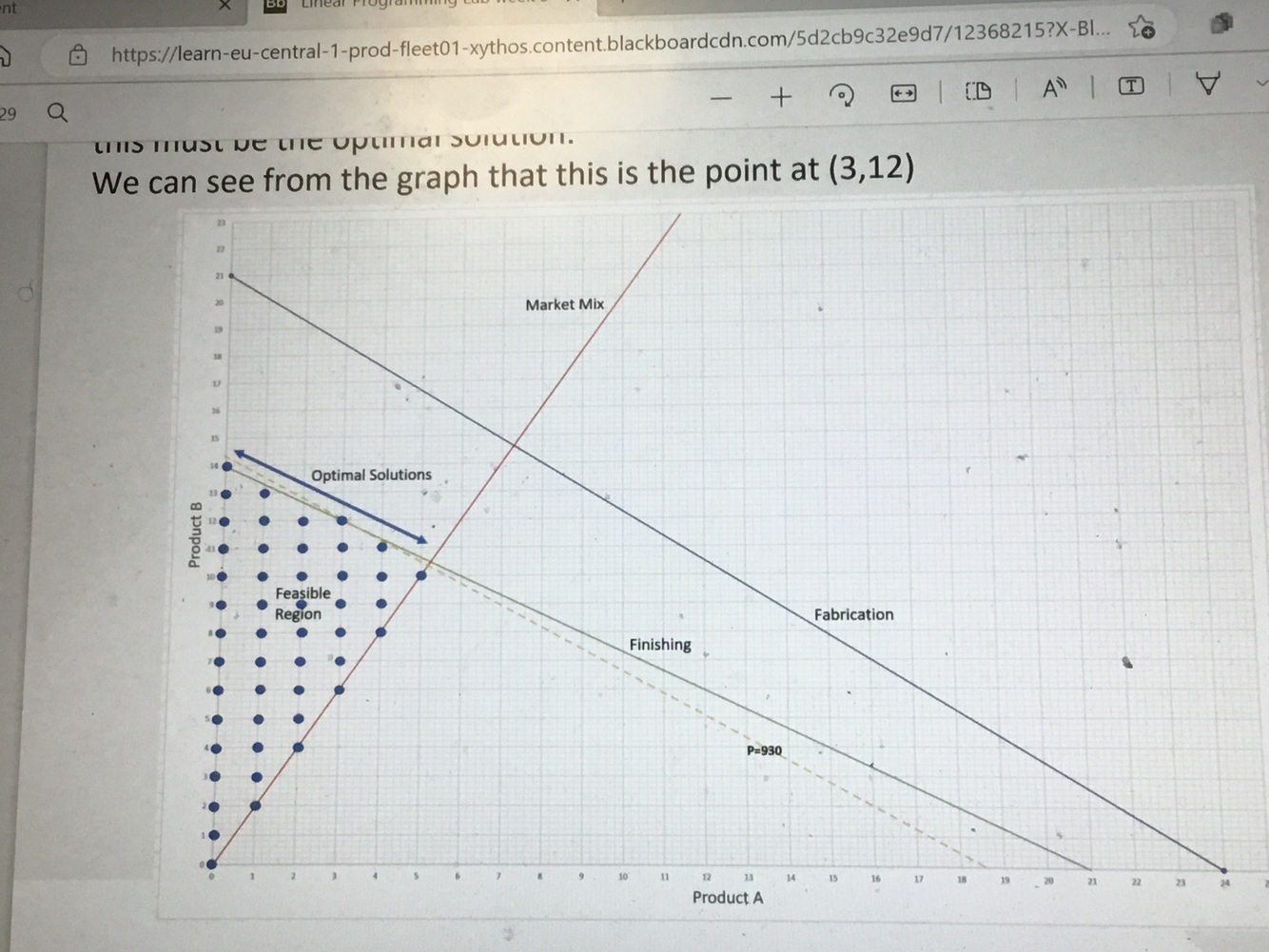 Below the finishing constraint and above marketing constraint