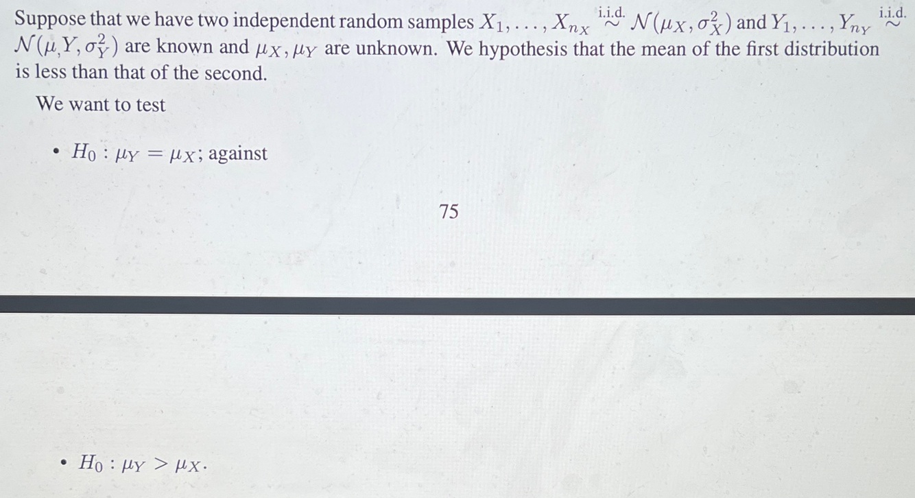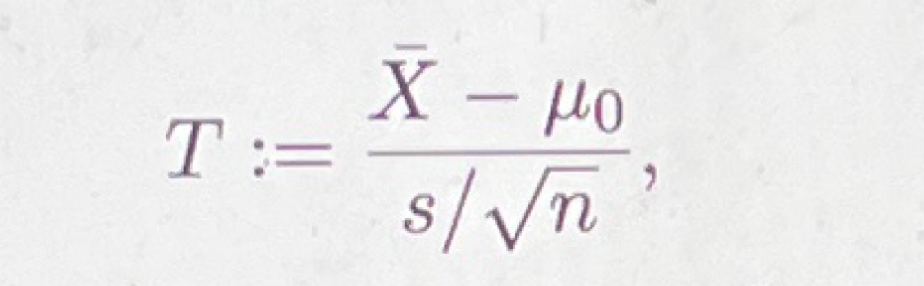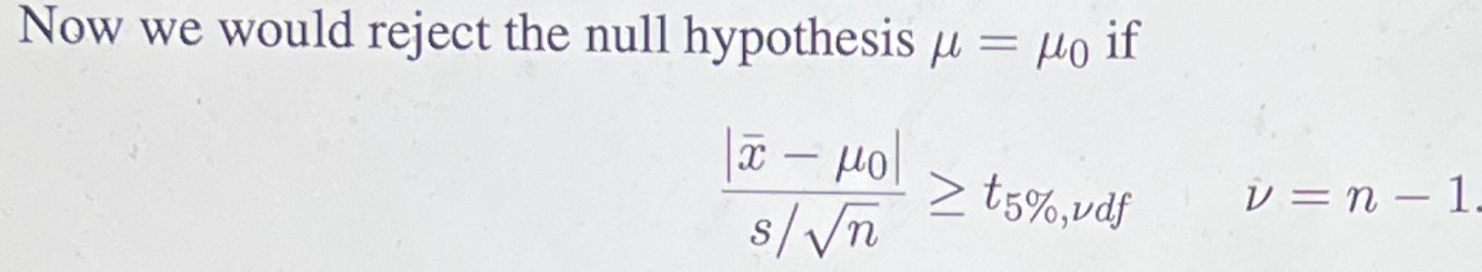 Denote the test stat to reject the null hypothesis μ=μ_0 at the 5% confidence level and the associated dist