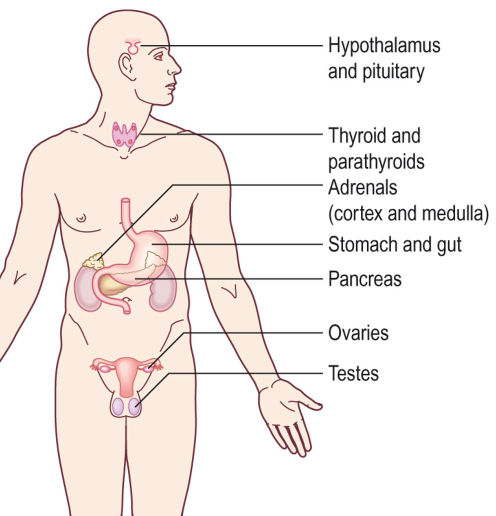 What hormones are produced in the Paraventricular nuc. in the hypothalamus?