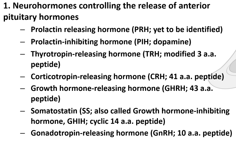 What are some Neurohormones controlling the release of ant. pituitary hormones?