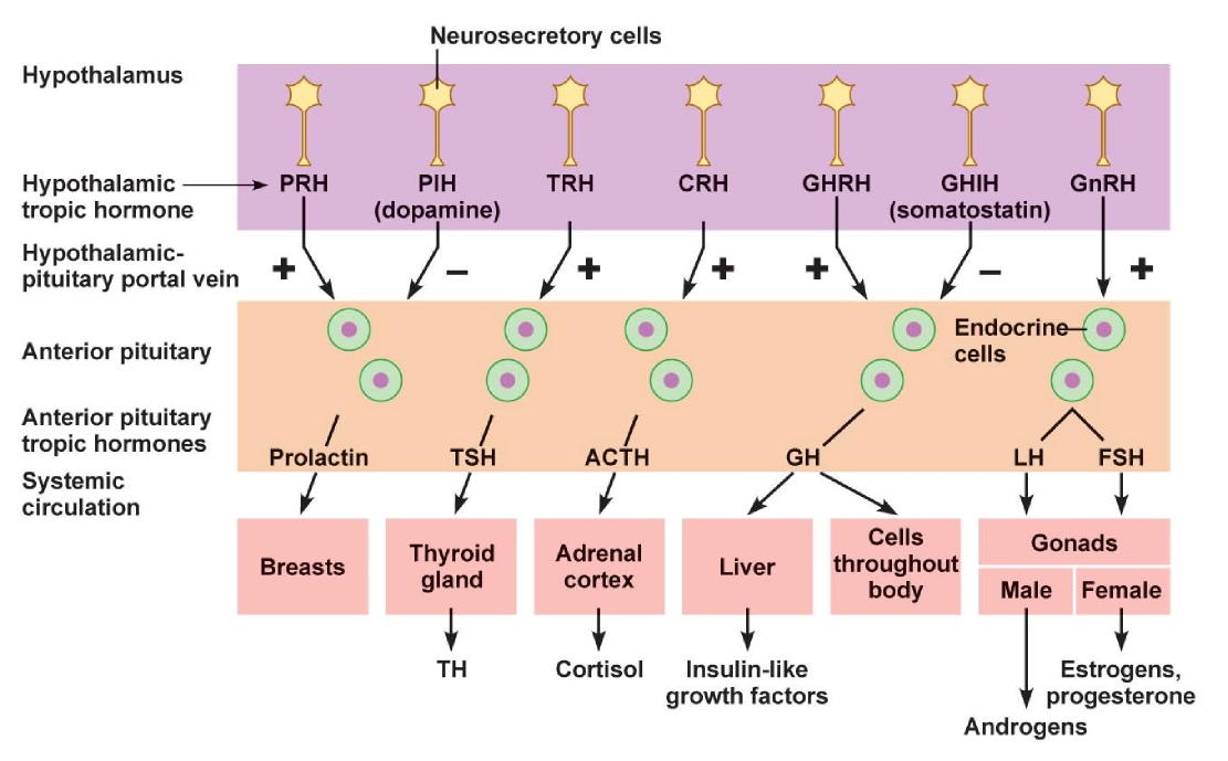 What are some of the simplified cascades of Hormones from the ant. pituitary?
