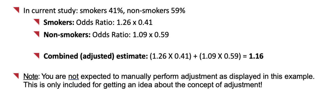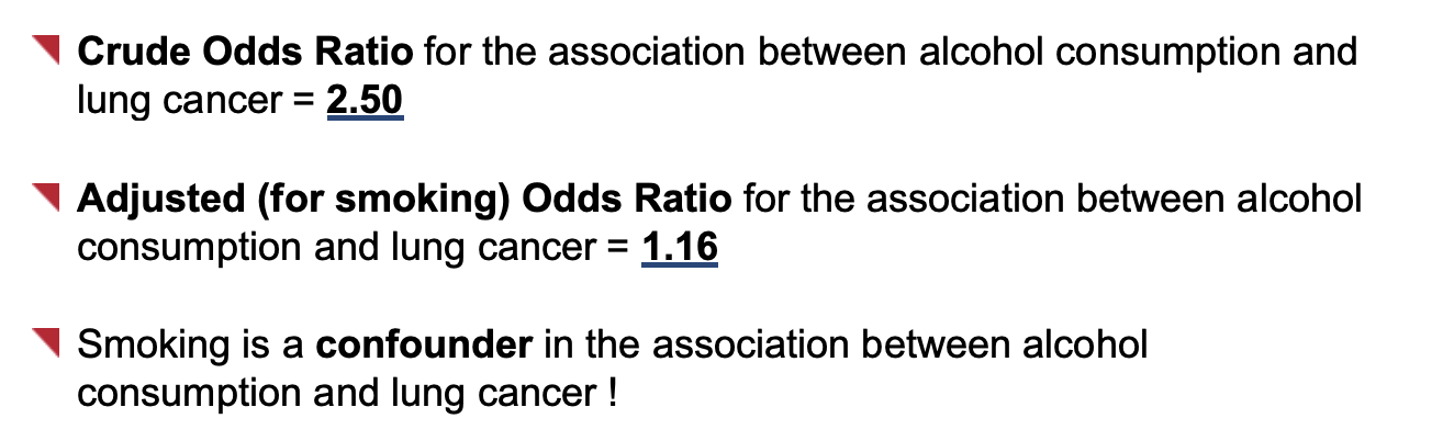 -After adjusting (also called ‘controlling’) our estimates for a potential confounder, these estimates are then said to be adjusted for