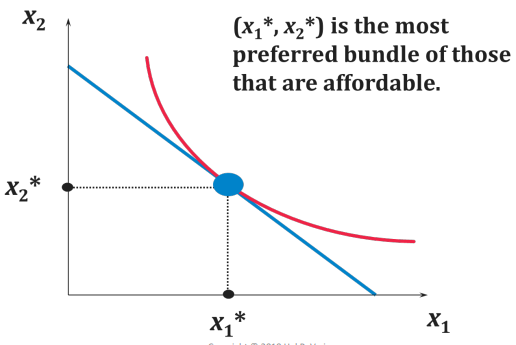 Bundle of goods highest indifference curve: (x_1^, x_2^) ⇒ optimal choice