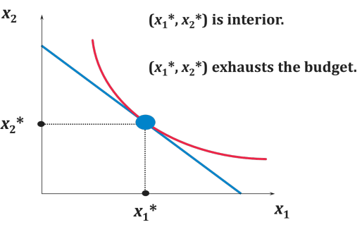 When x_1^>0 and x_2^>0: Demand bundle is “interior”