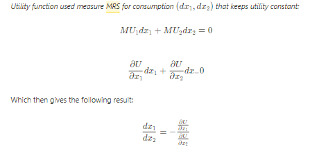 Utility function used measure MRS for consumption (dx_1, dx_2) that keeps utility constant: