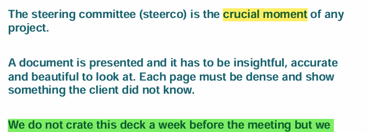 what is the steering commitee (steerco), when do we start to prepare the deck?