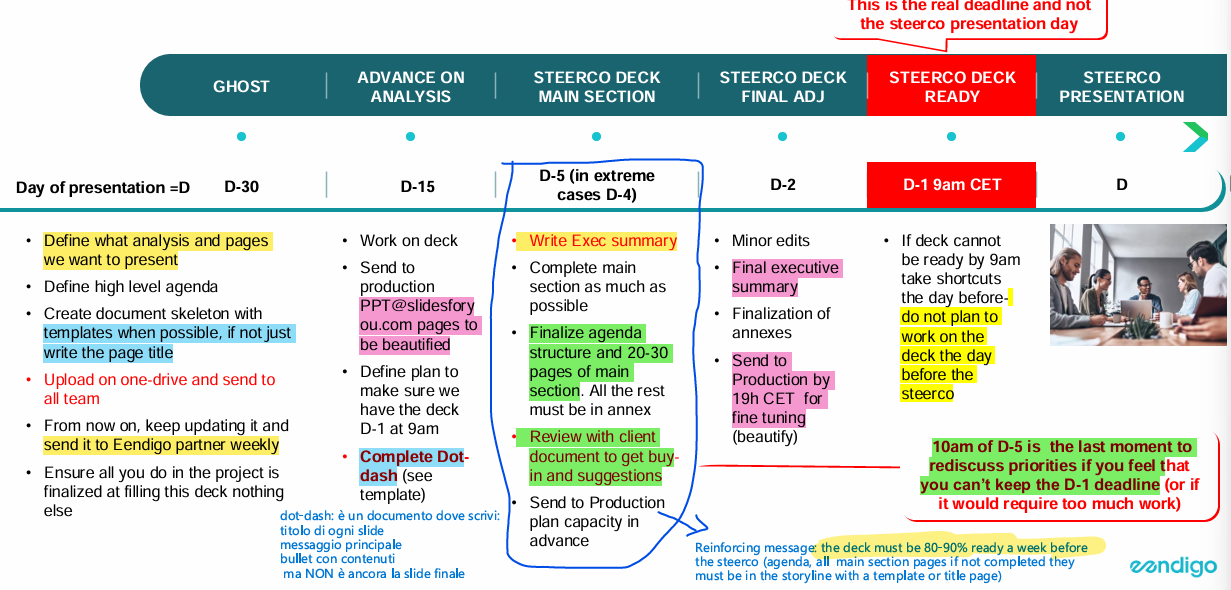 which are the steps of steerco process; what has to be done in D-30, in D-15, D-5, D-2, D-1 and D? which is the real deadline?