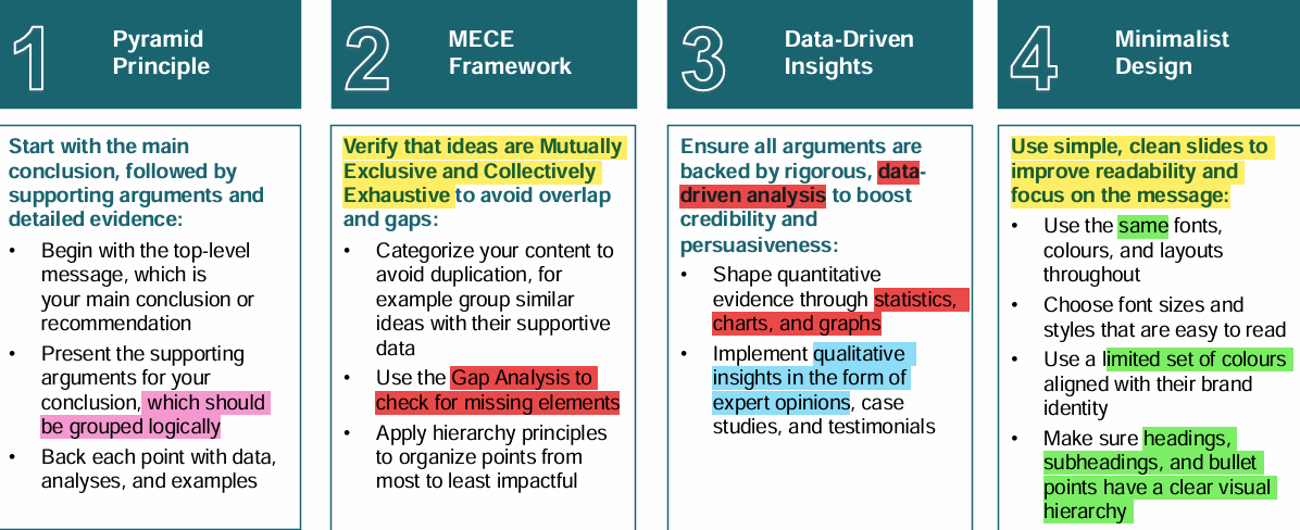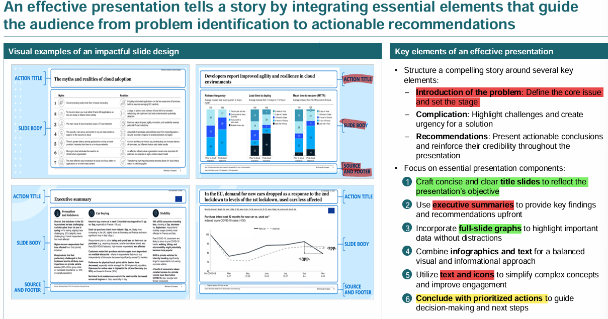 which are the key elements of an effective presentation? which 3 sections it has to have?