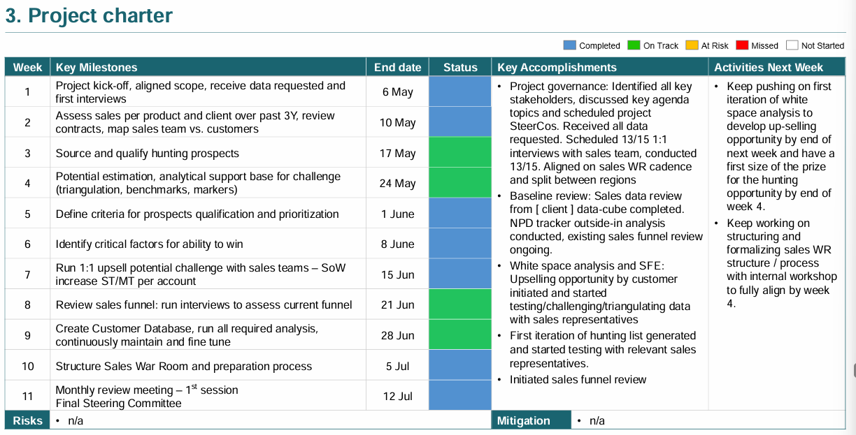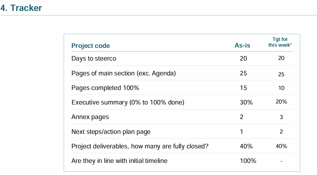 it’s a standard set of 5+1 pages that you have to update weekly to track the project. this pages are: