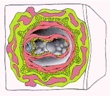Cavities in the matrix will fuse to become one cavity–the Chorionic cavity. Chorion-wall distal to cavity