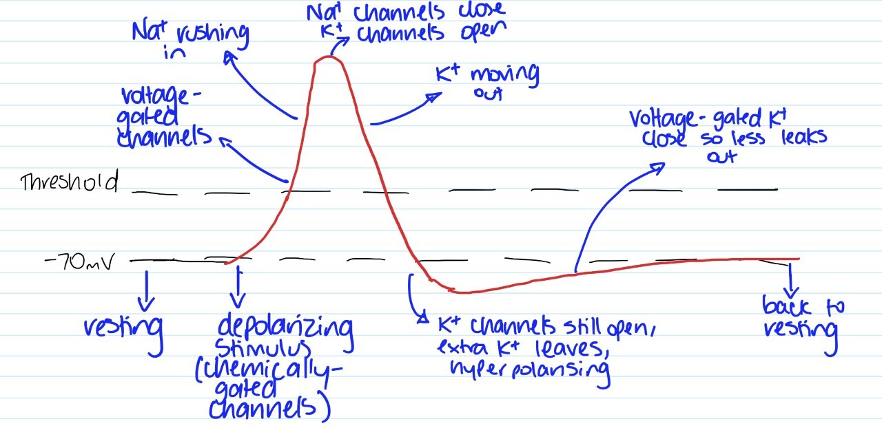 Describe the major event at each point in the action potential