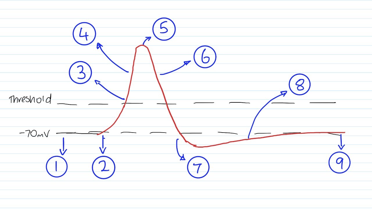 If there are more depolarising events, the cell will approach the threshold value which allows an electrical signal to be carried within the neuron (action potential).