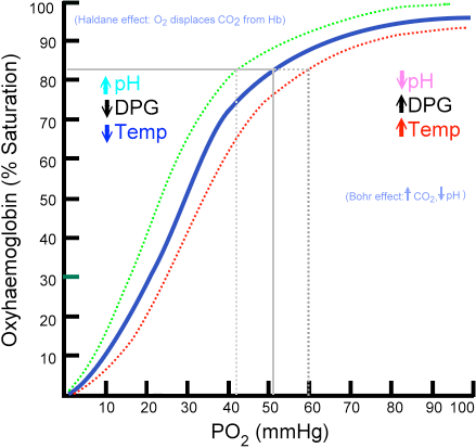 What effect do increases and decreases in pH, DPG, and temperature have on oxygen binding curves?