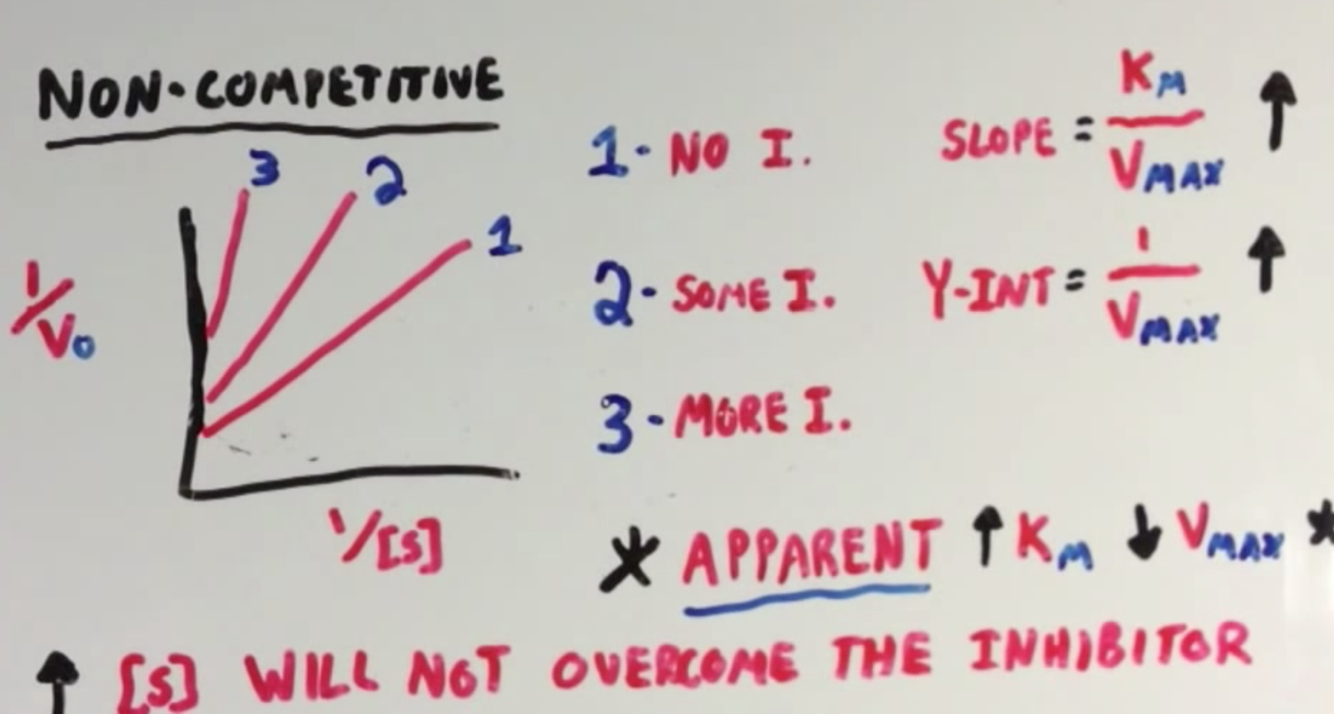 What is non-competitive inhibition and what is the lineweaver burk plot for it?