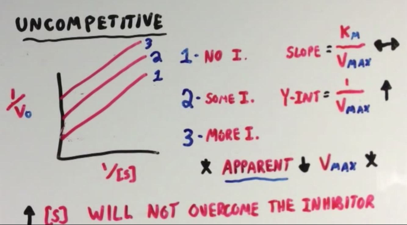 What is uncompetitive inhibition and what is the lineweaver burk plot for it?