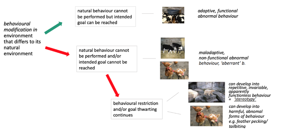 Abnormal behaviours (not-natural) can be adaptive with no welfare indications, how?