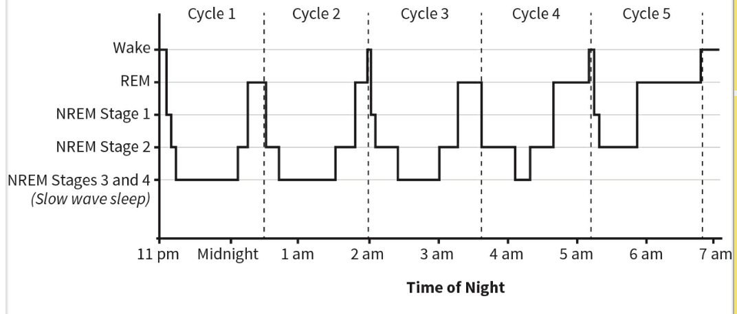 In the first half of the night, the vast majority of our ninety-minute cycles are consumed by deep NREM sleep, and very little REM sleep,