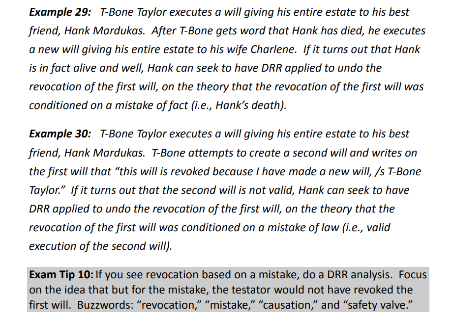 If a will is revoked on the basis of mistake in law or fact, the DRR will revive the revoked will.