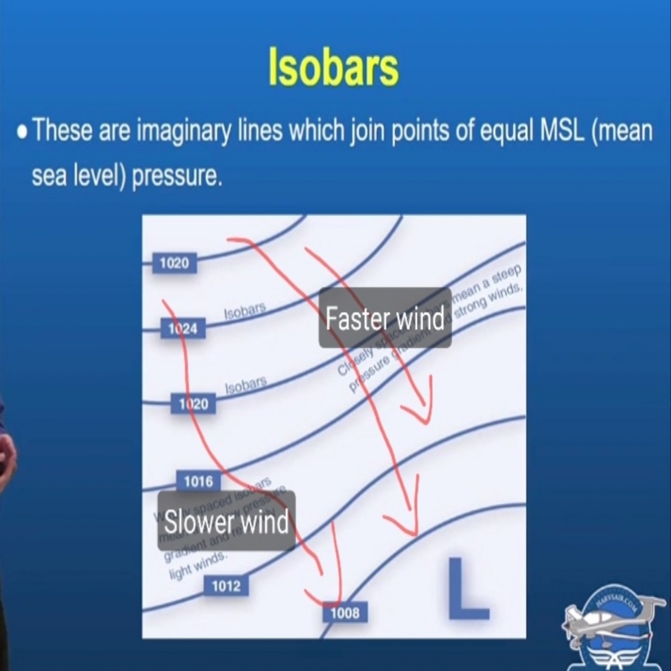 At heights around 2-3000 AGL, what direction does the wind flow in relation to the isobars?