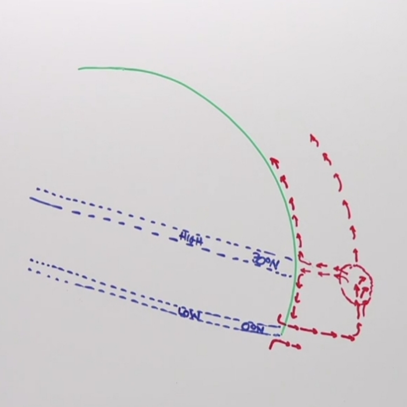 This causes it to kind of pile up all in that one spot, which increases the pressure. This means some of the air is forced out and down and, once it hits the ground, spreads out to the north or south
