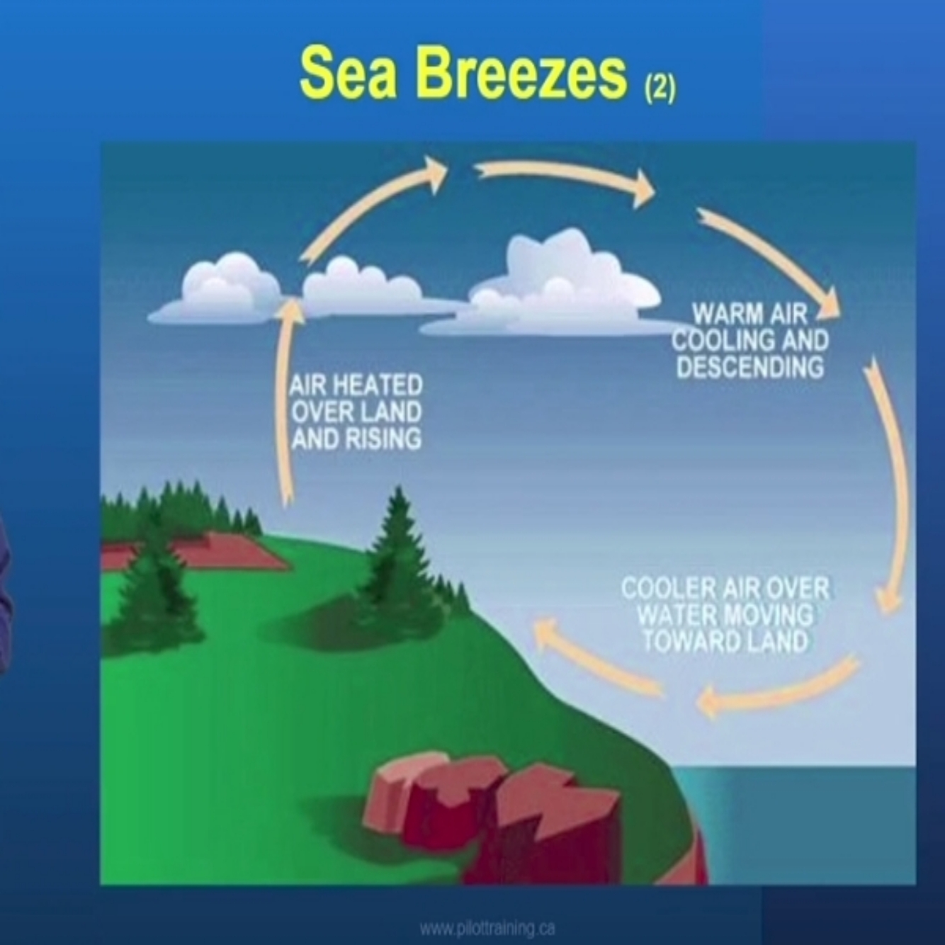 Day: Land is hotter than the water during the day. Air over land rises, colder air from over water takes it’s place. Results in wind blowing from water to land.