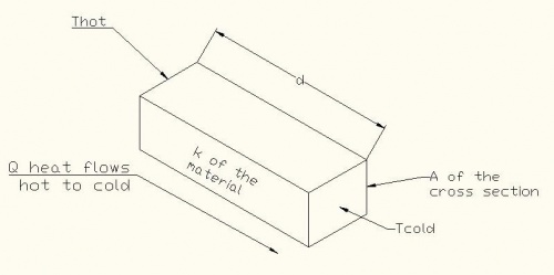 Q=kA(hot temp-colder temp) divided by d (k is in watts/mK; A is in m squared; d is in in m)