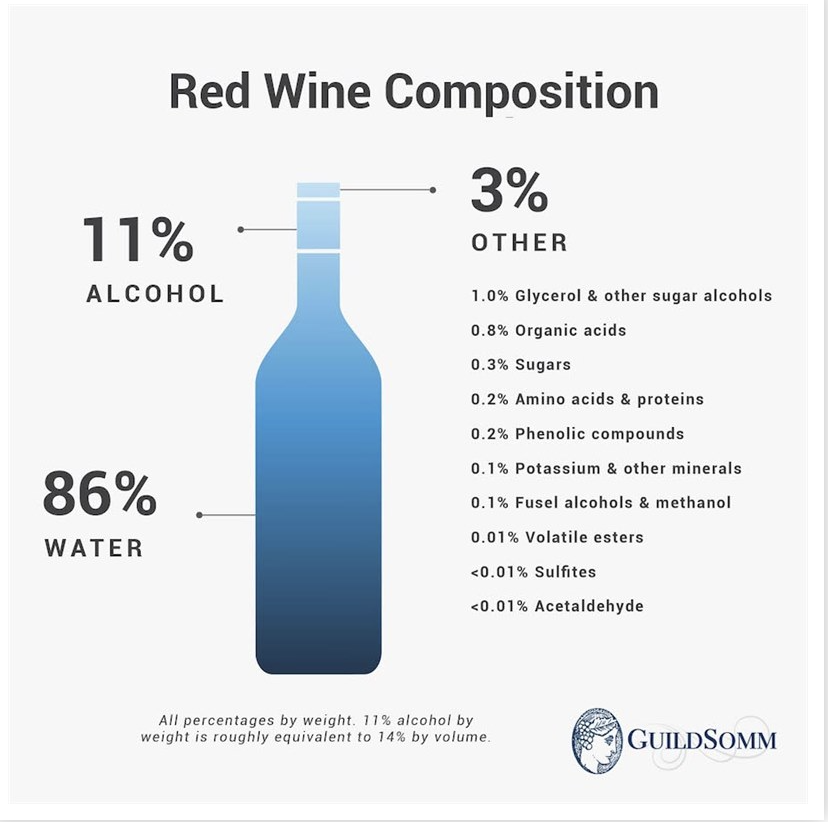 glycerol (a “sugar alcohol”), organic acids, unfermentable sugars, proteins, fusel alcohols (larger alcohols), phenolic compounds such as pigment and tannins, and aroma compounds like esters, terpenes, and thiols.