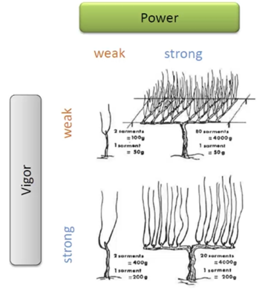 Vine vigor = speed of growth, cane weight, single cane growth