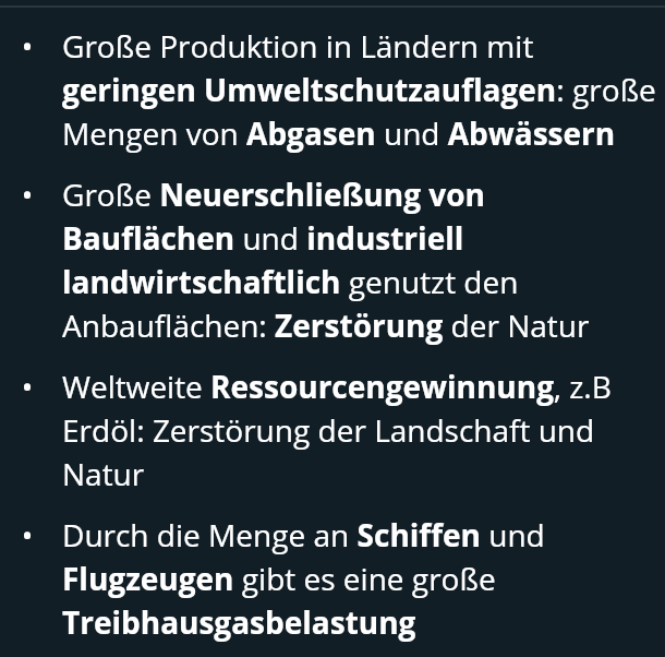 Nenne negative Auswirkungen auf die Umwelt aufgrund der Globalosierung