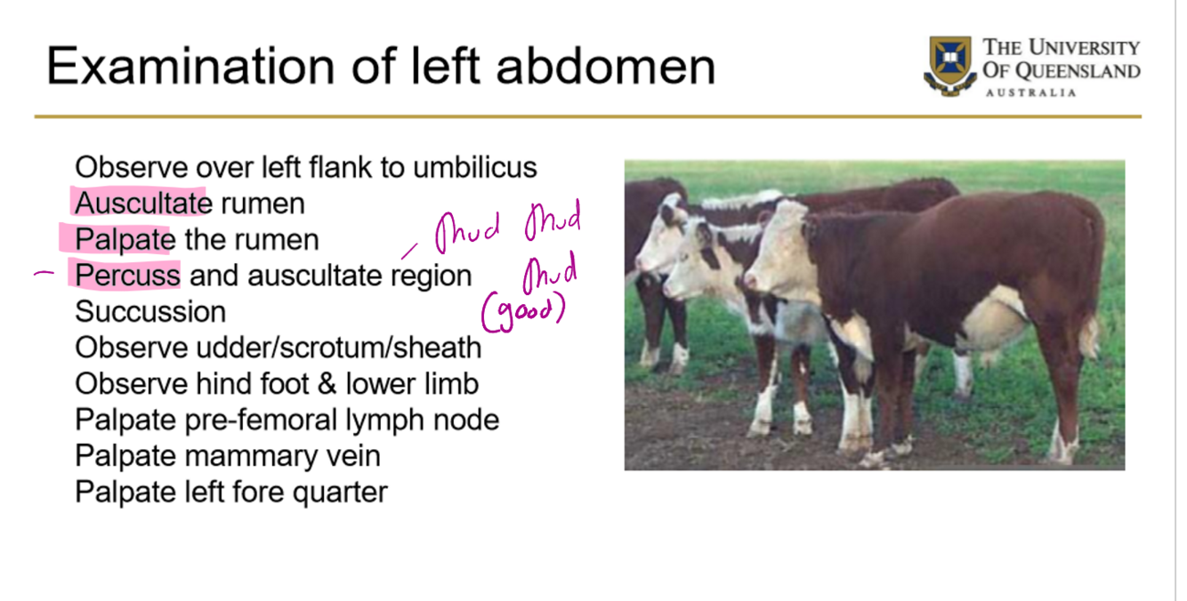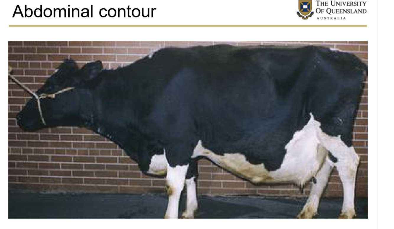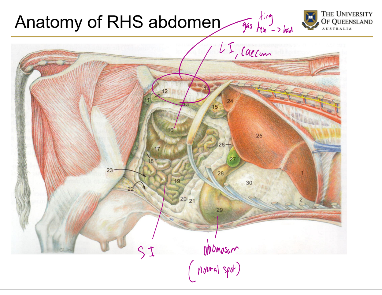 what is usually found on the right side of the cow abdomen but cam migrate to the left
