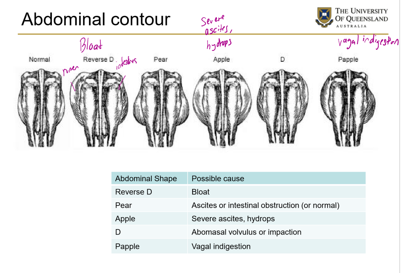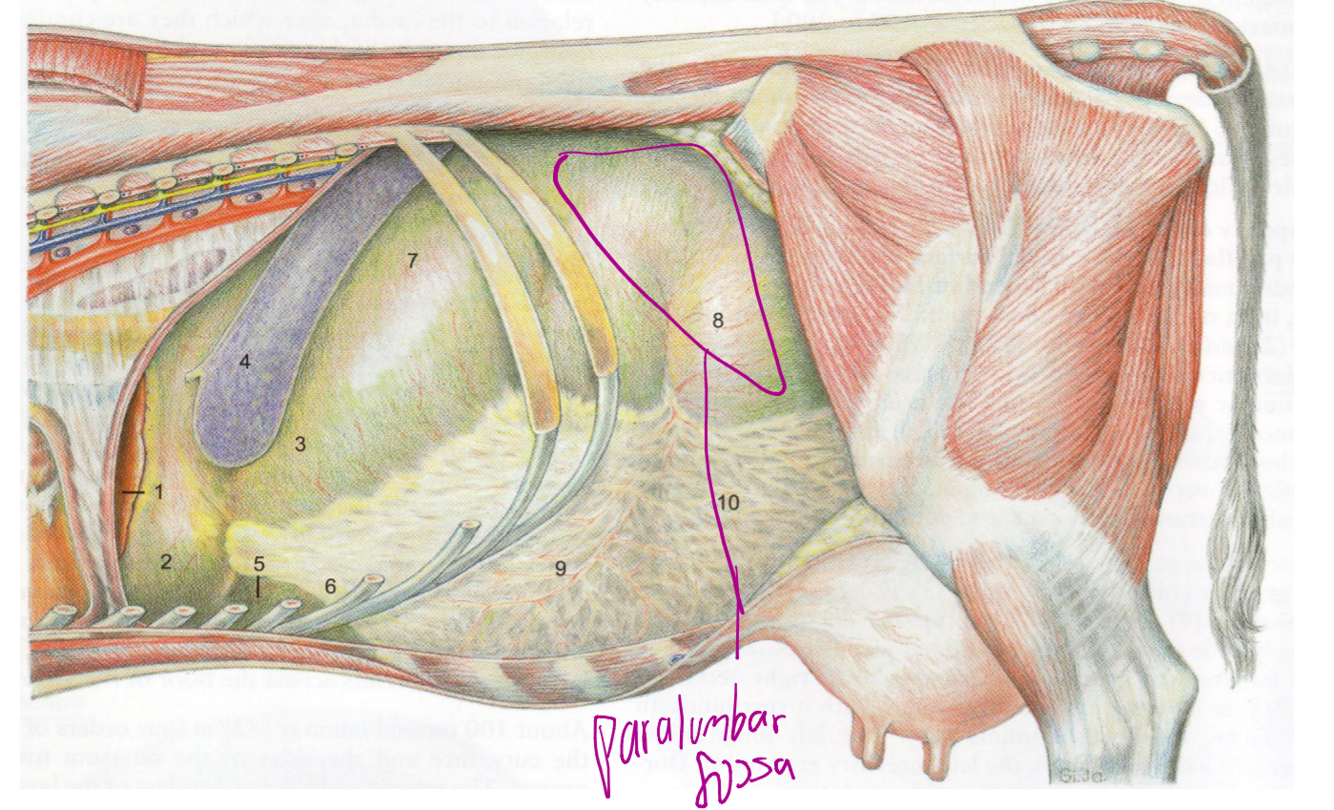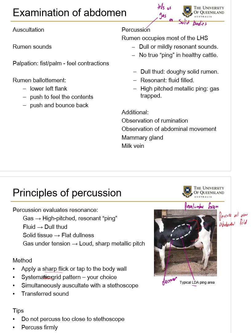 what is usually found on the right side of the cow abdomen but cam migrate to the left