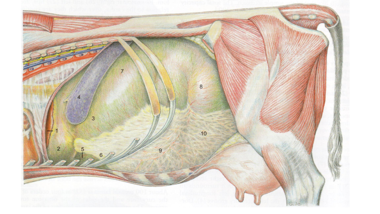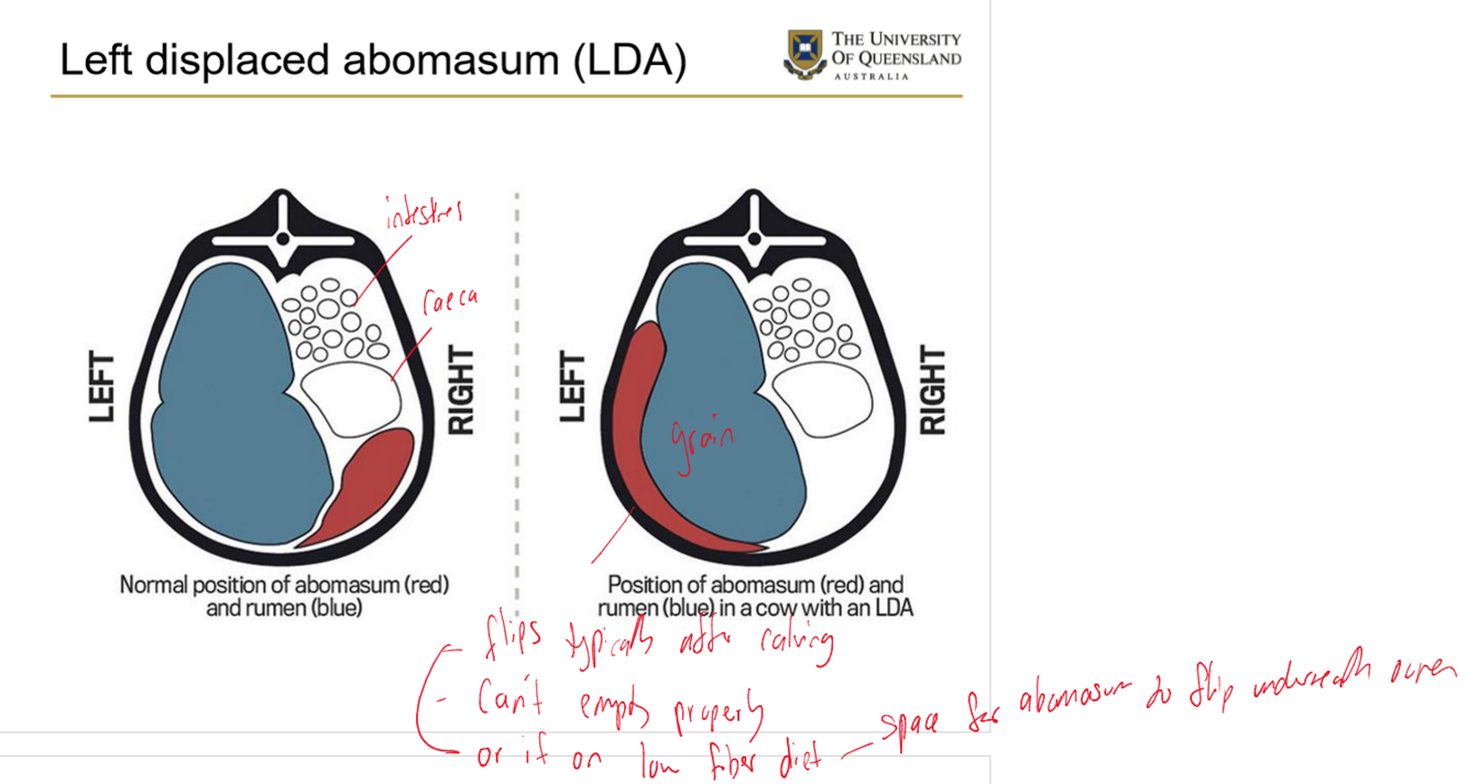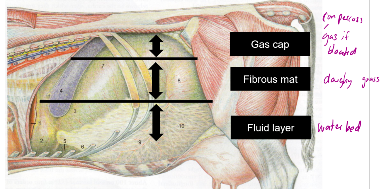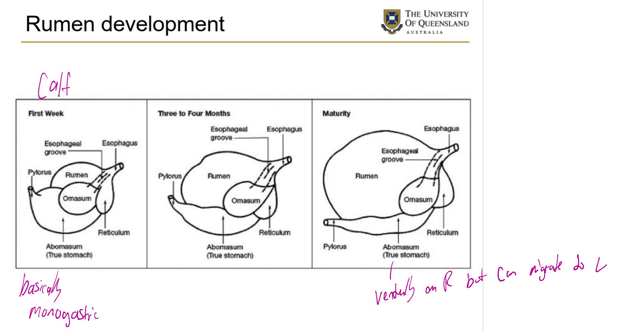 different areas are based on calf’s age as calves are essential born as monogastrics (big abomasum and small rumen).
