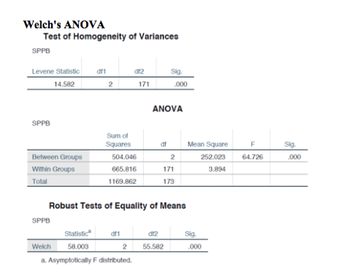 What are 3 steps in the interpretation of the Wlech’s ANOVA?