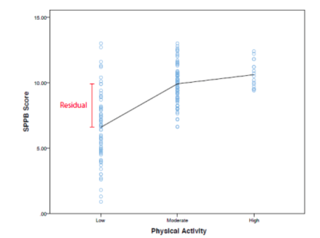 A residual is a prediction error, or in other words, the difference between the observed response and the response predicted by our model (e.g. mean response).