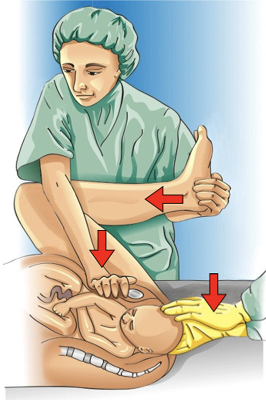Hyperflexing the legs tightly to the abdomen - used for shoulder dystocia