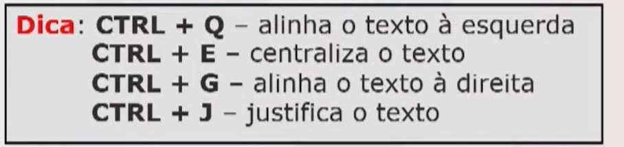 QUAIS SAO OS ATALHOS DOS 4 ALINHAMENTOS