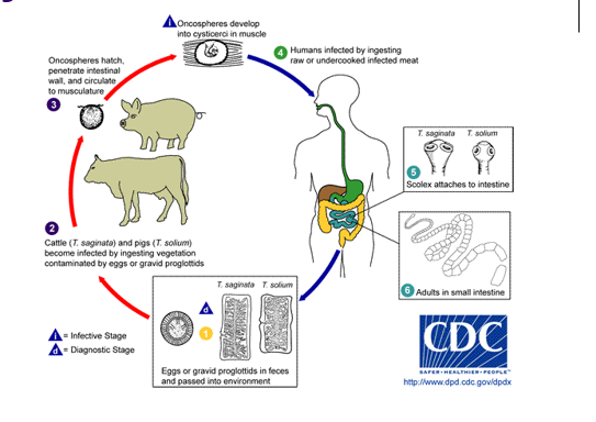 life cycle of a pork and beef tapeworm