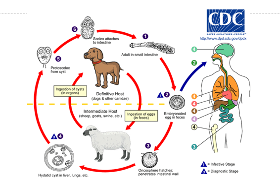 dogs and foxes are definitive host - never know infected