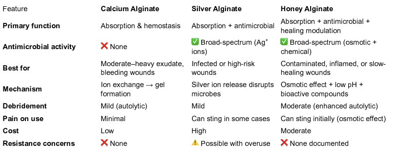 3 types of aliginate and when to use them. What does alginate do to exudate?