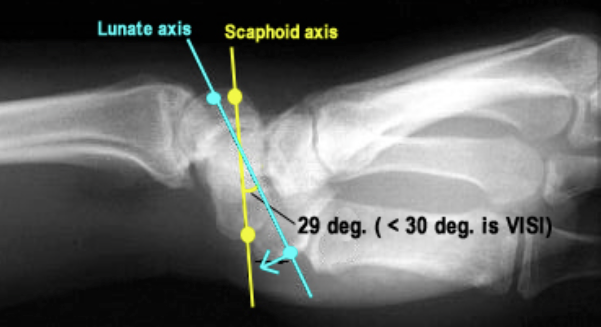 Occasionally VISI seen in pts with ligamentous laxity and no hx of trauma ( unlike DISI)