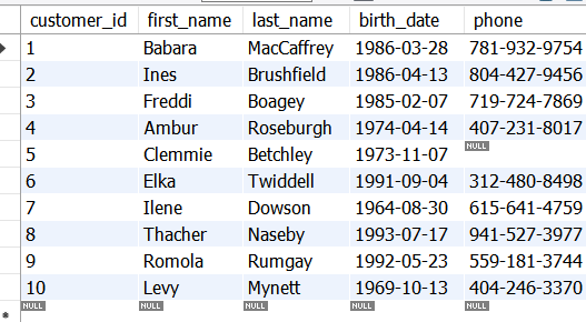 – Select customer_id, first_name, last_name