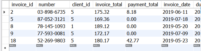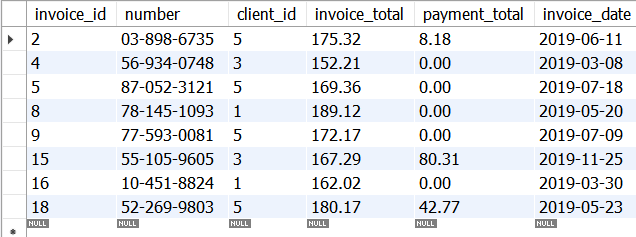 – select clients that have an invoice